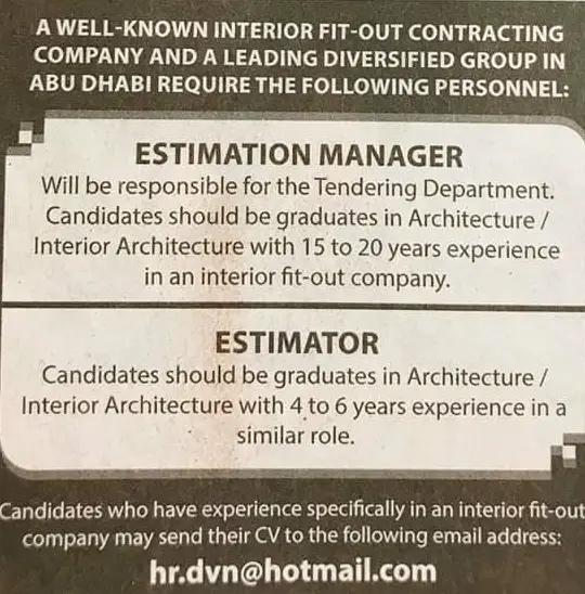 07 Nov 2019 Home » » Estimator-Job Estimator-Job Posted in By agentqq On November 7, 2019 About Author agentqq Accountant by Day, writer by night loves to write for people and enable them to get employed, loves to play games Currently have xbox series x Leave a ReplyYour email address will not be published. Required fields are marked *Comment * Name Email Website Save my name, email, and website in this browser for the next time I comment. Δ